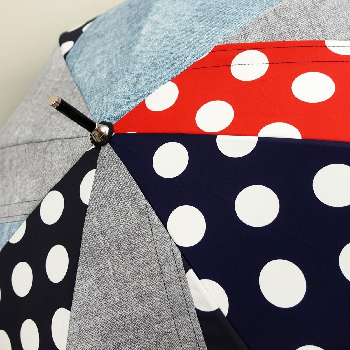 生地部分はパッチワークに縫製することで1点1点異なる表情となり、骨やハンドルといったその他パーツも都度生地にあわせてセンス良く組み合わせファッション性も兼ね備えた道具(傘)として世に送り出しています。